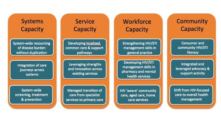 Care for the Sydney Local Health District HIV and Sexual Health Services. Participants included consumers using HIV services; advocacy organisations, clinicians, nurses; outreach workers and SESLHD